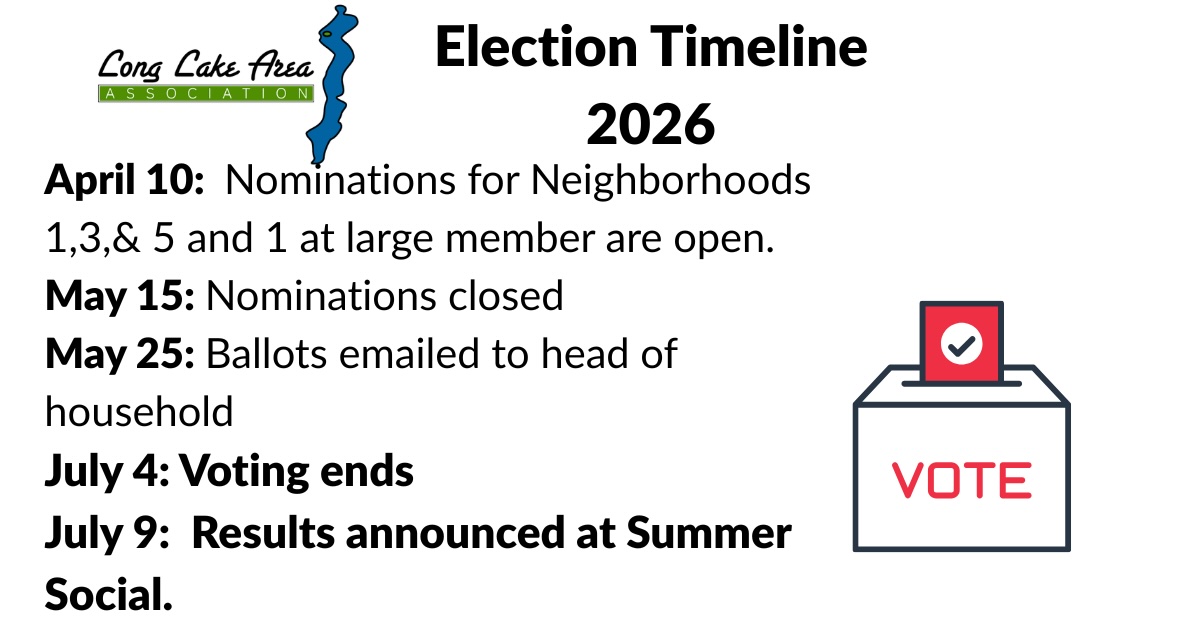 Board members help guide water quality efforts, AIS prevention, events, and decisions that impact Long Lake. It’s a manageable way to get involved and represent your neighborhood.